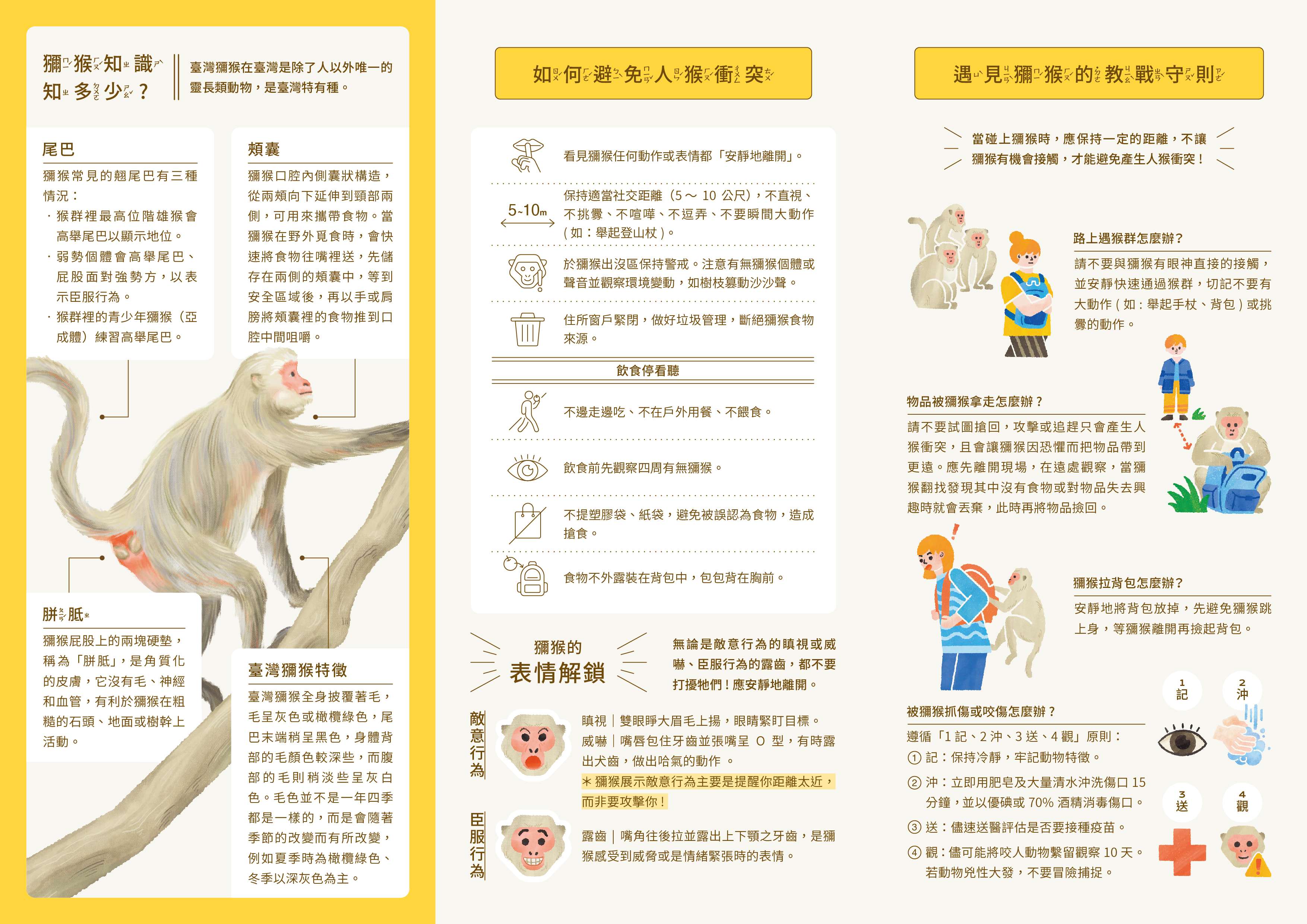 一、基於近年來本市屢有臺灣獼猴滋擾民眾居家安寧與安全、 或於農地出沒衍生農損等事件,為避免人猴衝突問題擴大,兼以促進民眾認識臺灣獼猴生態習性與遭遇時之因應 對策,本處爰委託財團法人農業科技研究院規劃旨揭文宣之電子檔,歡迎自行應用於民眾或校園師生之教育宣導用途。
