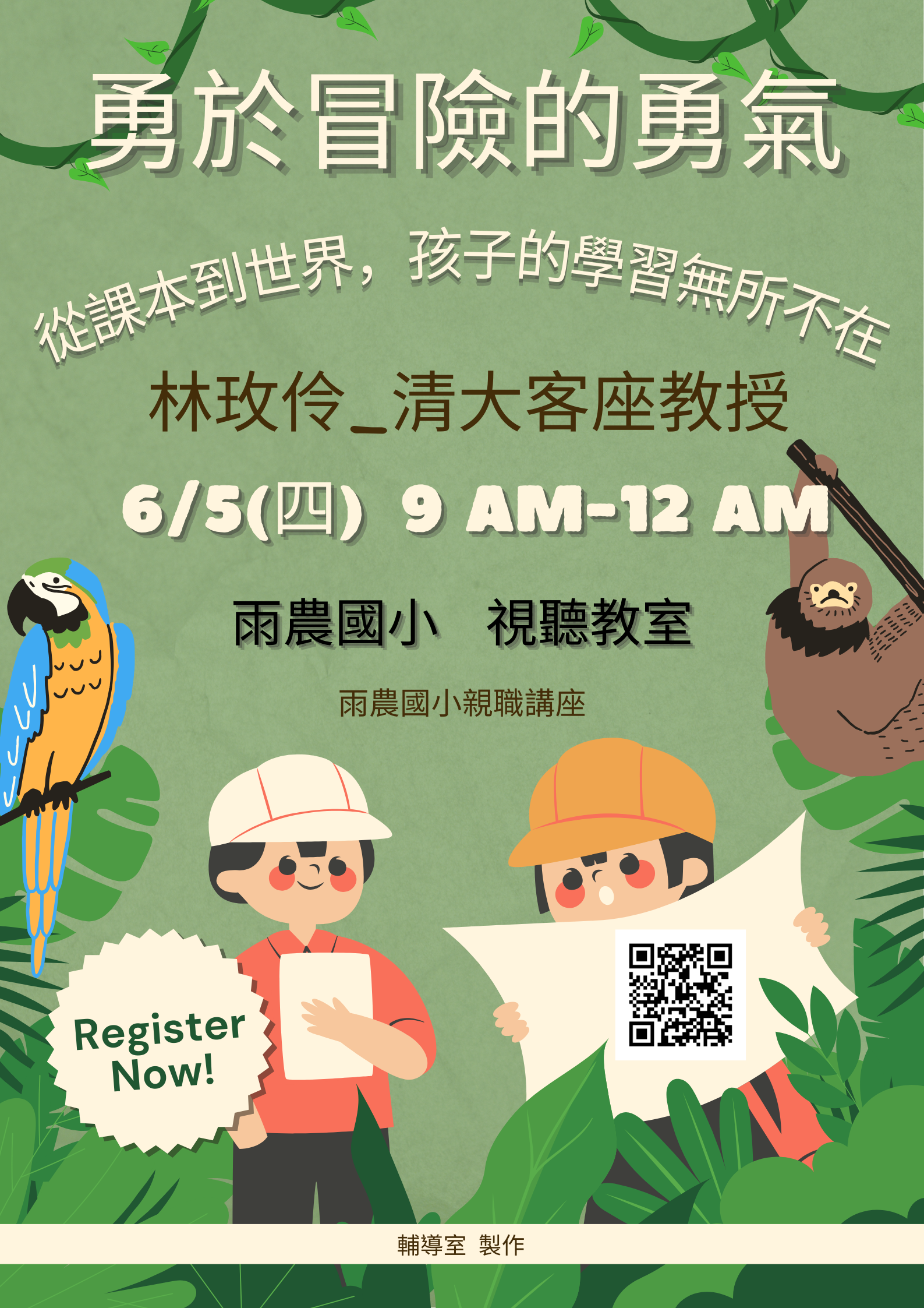 (三)講題:「勇於冒 險的勇氣:從課本到世界,孩子的學習無所不在」。