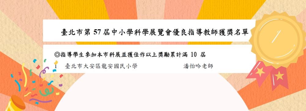 恭喜本校潘怡吟老師於臺北市第57屆中小學科學展覽會榮獲優良指導教師!