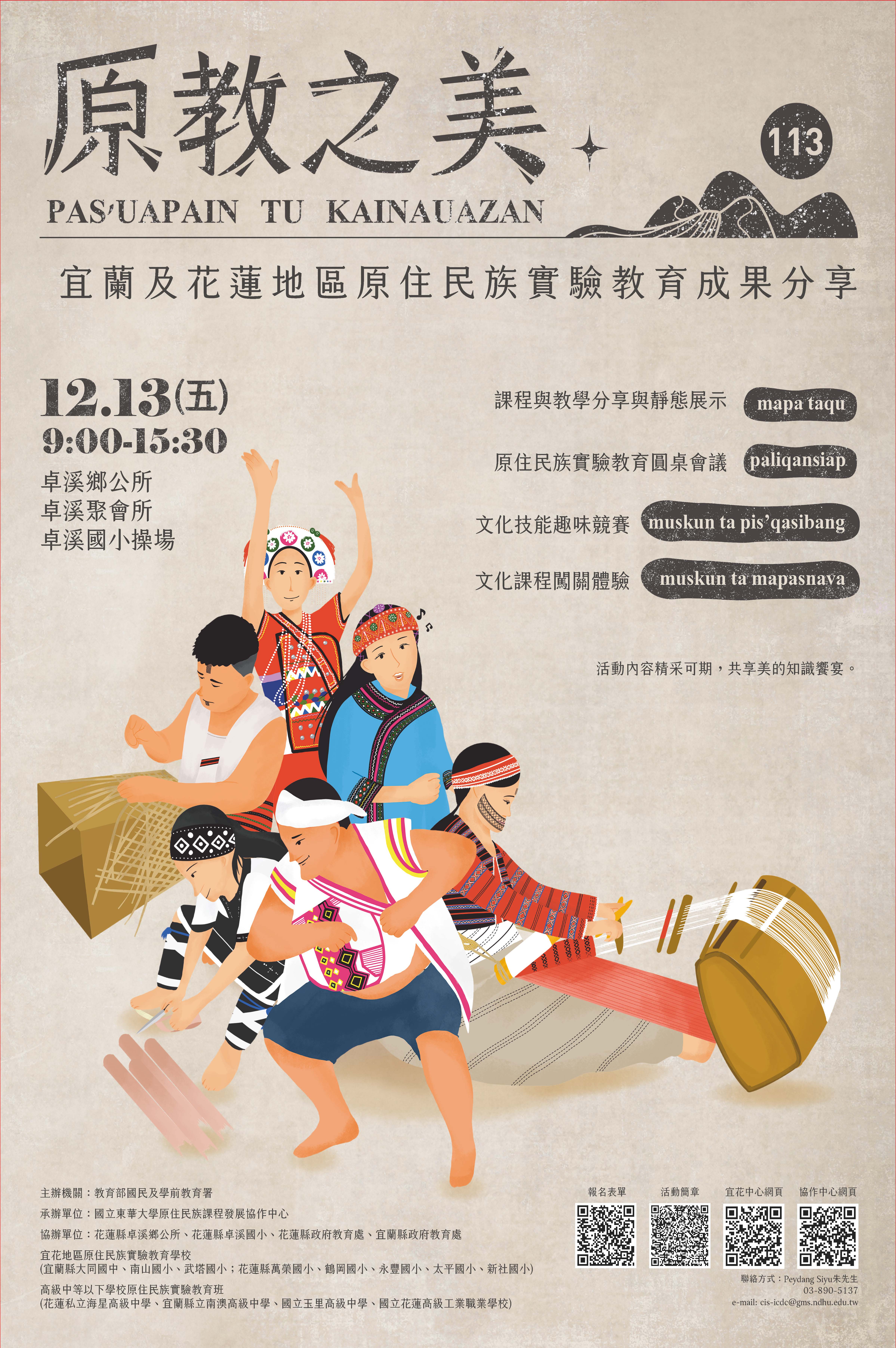 二、旨揭活動係由宜蘭及花蓮地區原住民族實驗學校進行課程、教學與學生學習成果分享,並透過文化課程體驗活動之方式,期能促進與會人員對於原住民族實驗教育有更為 深入之理解,盼創造聚焦、交流及多元對話的機會,提供相互參照與學習的平台。