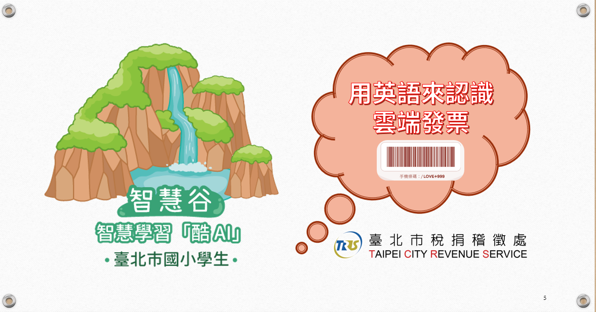 臺北市政府教育局酷AI系統平台結合其暑期酷AI活動,推出英文雲端發票口語練習等課程,透過該局辦理學生暑期自學抽獎活動,鼓勵國小學生以英文自主學習認識雲端發 票四部曲。