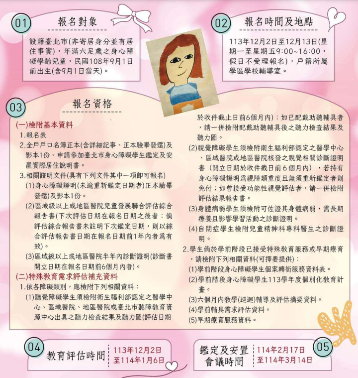 相關資料將同步公告於本局特殊教育科網頁「鑑定與安置」專區