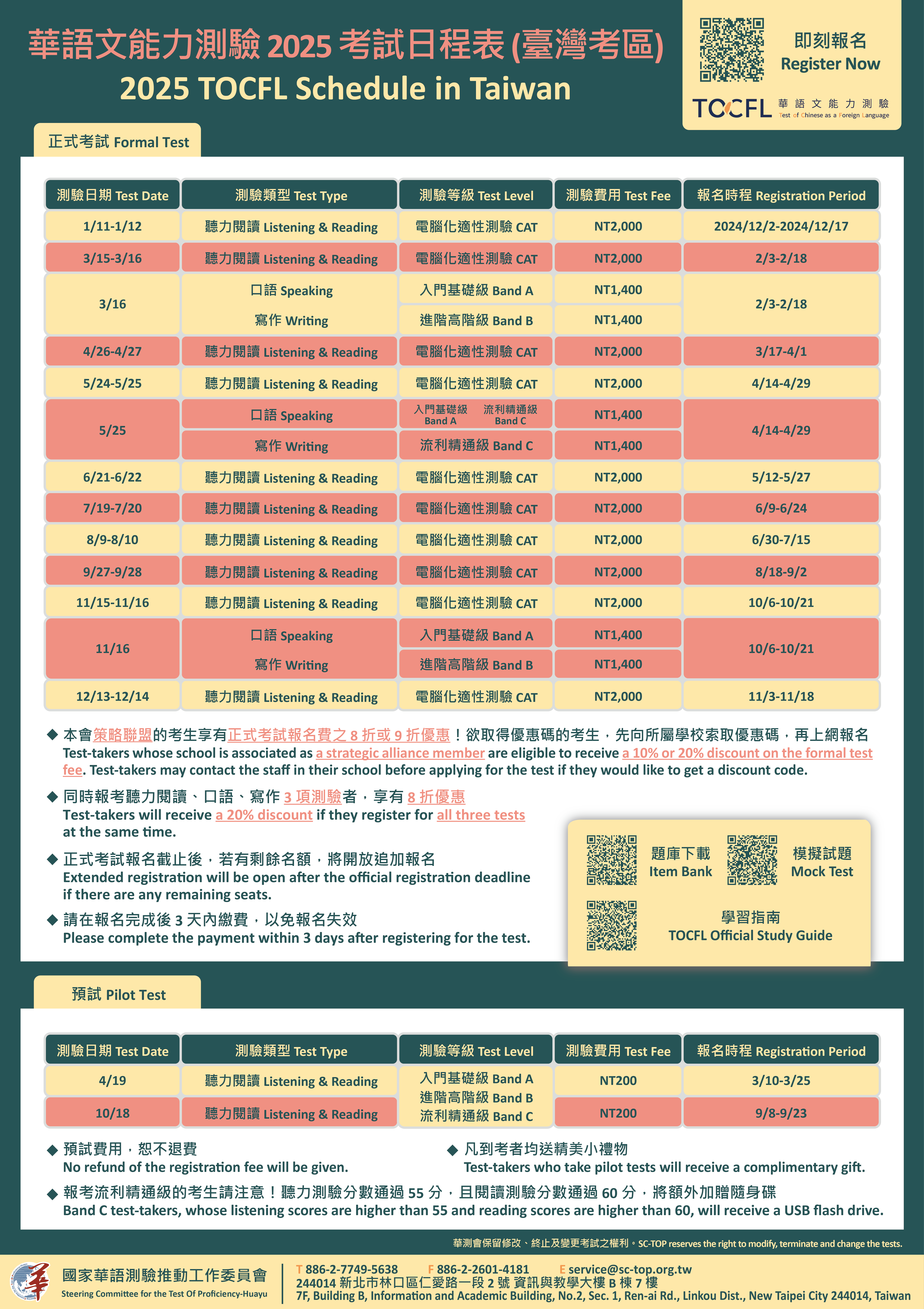 三、測驗報名方式: