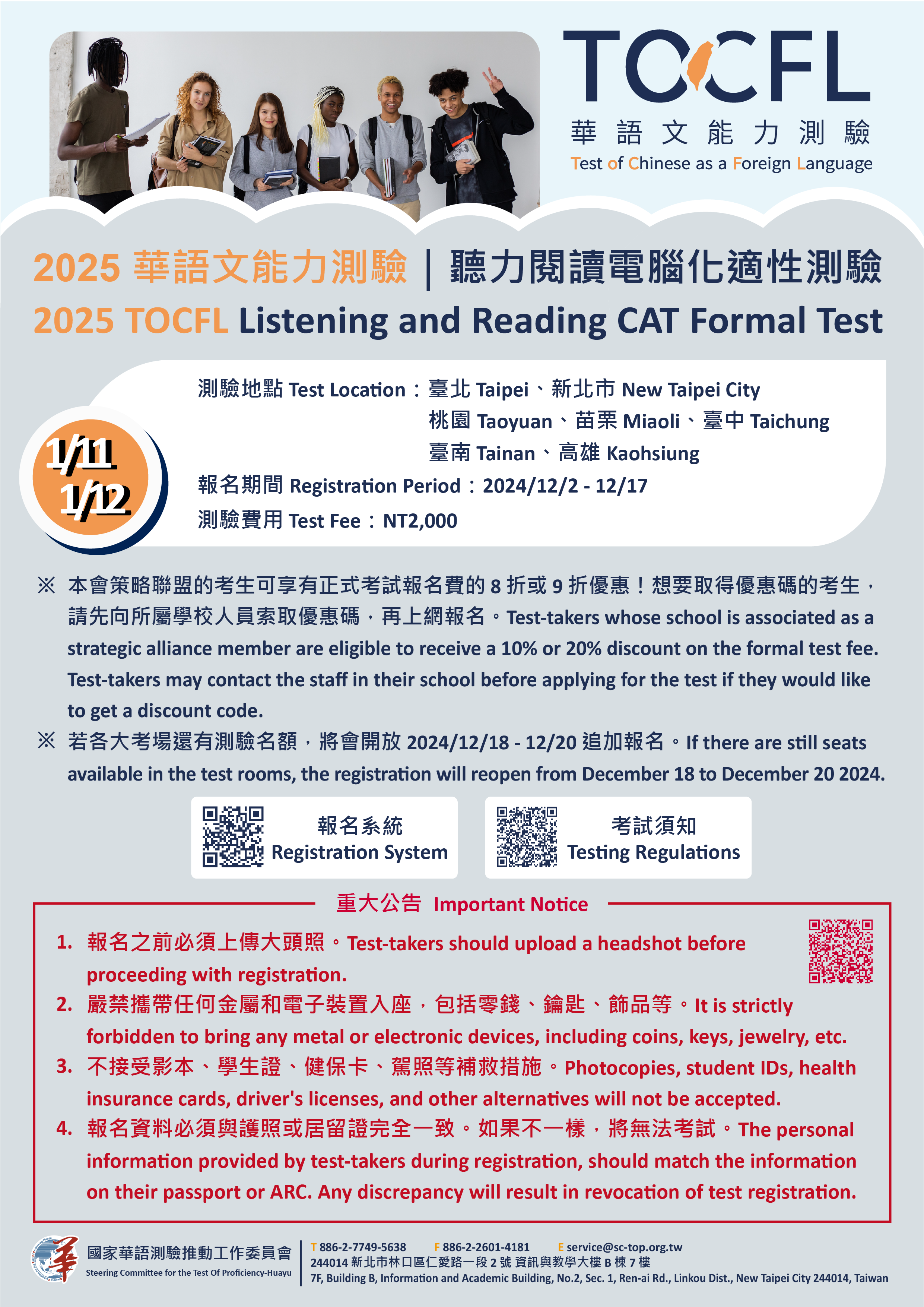 (一)114年1月11日(星期六):聽讀測驗—電腦化適性測驗。