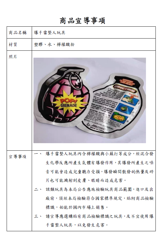 具,及不宜使用爆手雷整人玩具,以免發生危害。