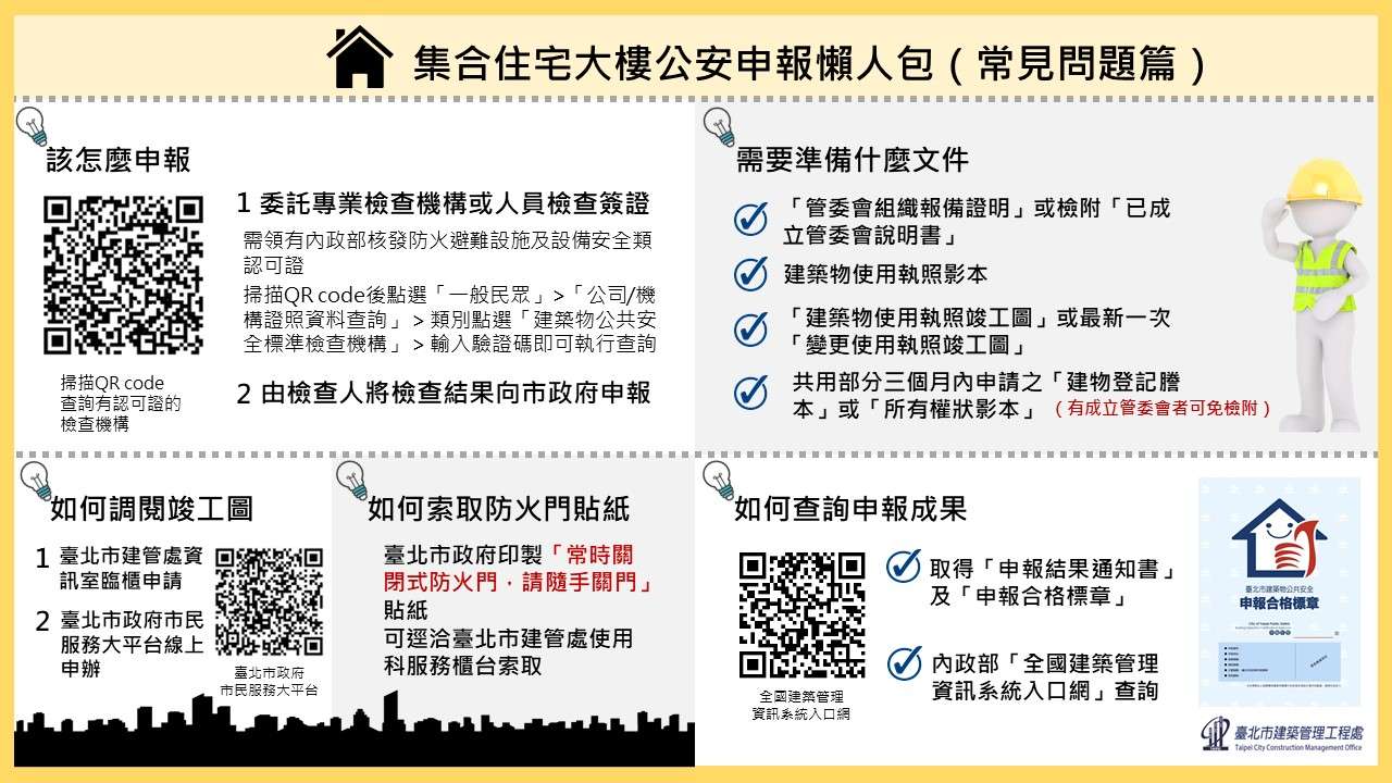 二、共用部分修繕可有補助及協助輔導 成立管委會,相關資訊請上網「集合住宅大樓公安申報懶人包」